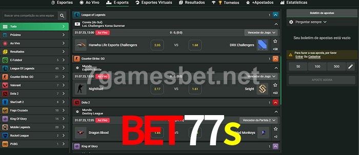 O bet77s oferece uma grande seleção de opções de apostas em e-sports com probabilidades competitivas